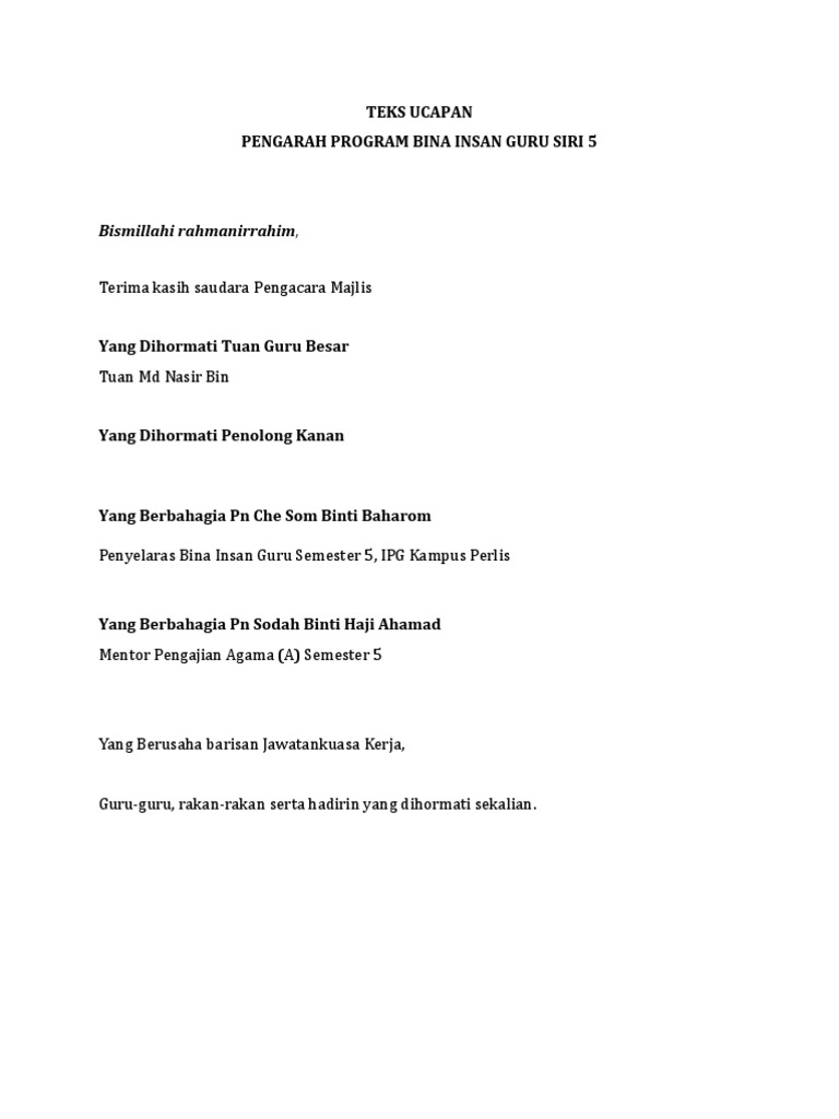 Teks Ucapan Pengarah Program Pdf