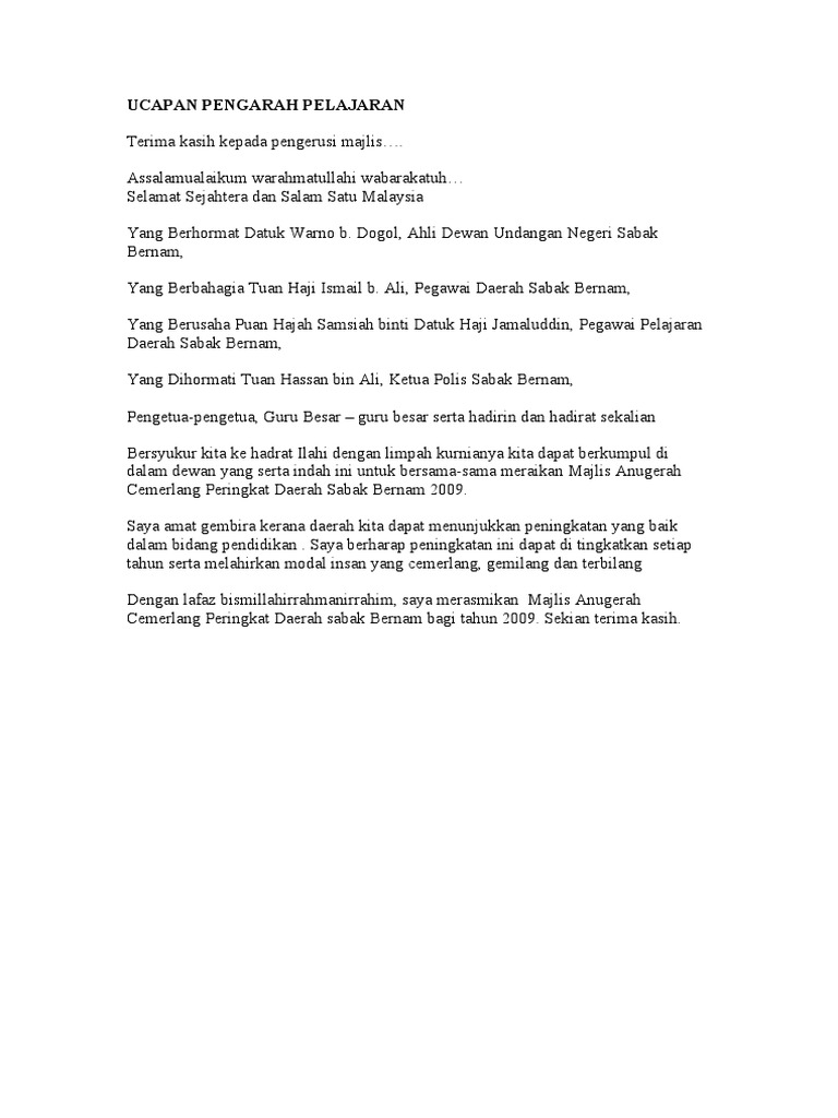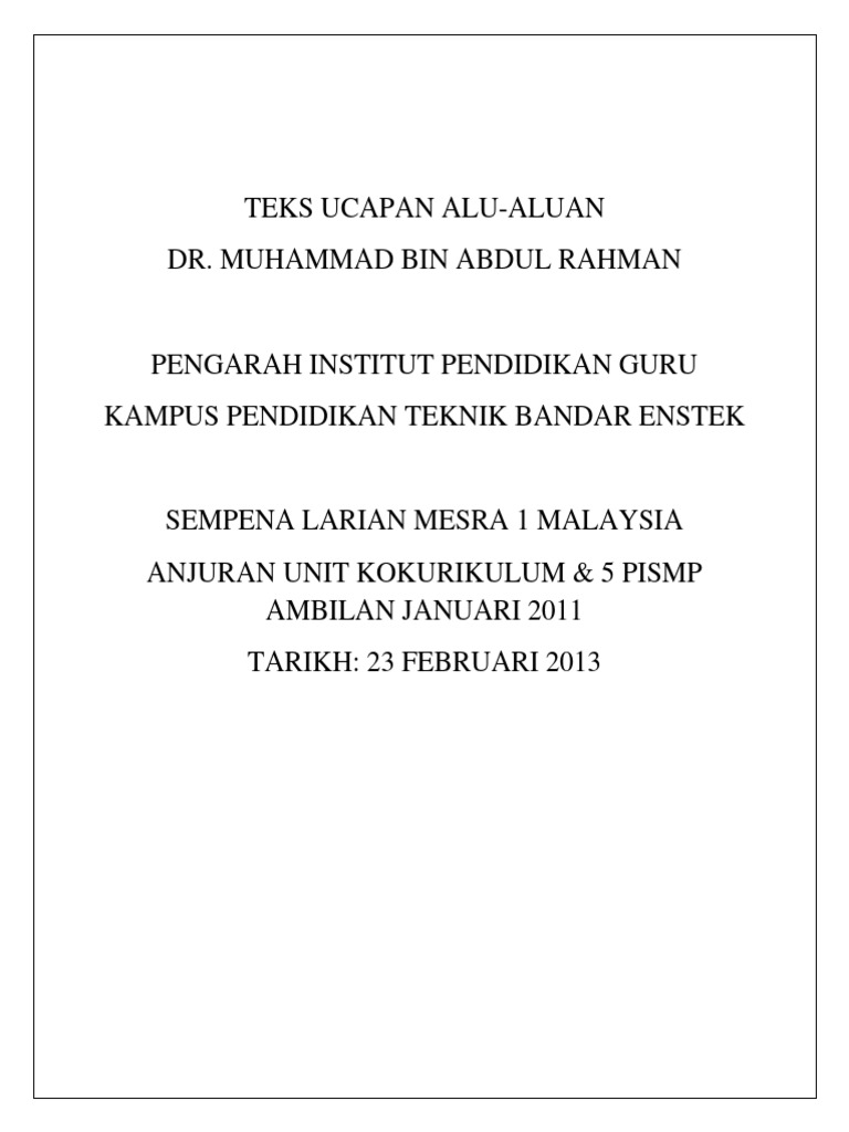 Teks Ucapan Alu Aluan Yb Dato Jabatan Perdana Menteri Facebook. Teks ucapan alu-aluan pengiran haji abd rahman bin pengiran seri indera pengiran haji ismail pemangku timbalan setiausaha tetap kementerian hal ehwal dalam negeri sempena taklimat skim persaraan caruman tambahan scp bertempat. Tan sri datuk seri panglima pandikar amin haji.