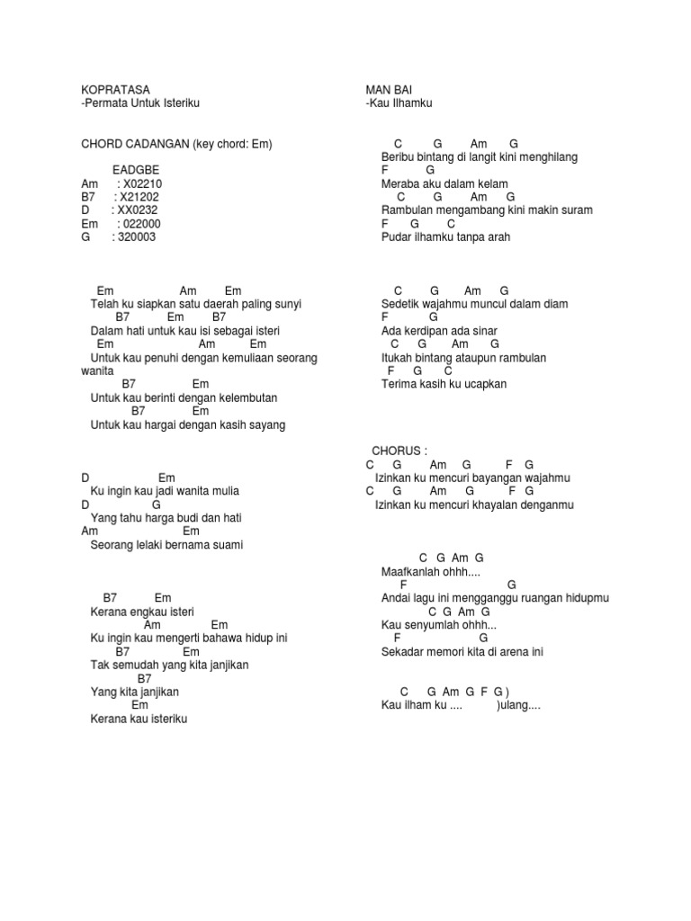 KOPRATASA -Permata Untuk Isteriku CHORD CADANGAN key chord. Satu daerah paling sunyi. Seorang lelaki Bernama suami.